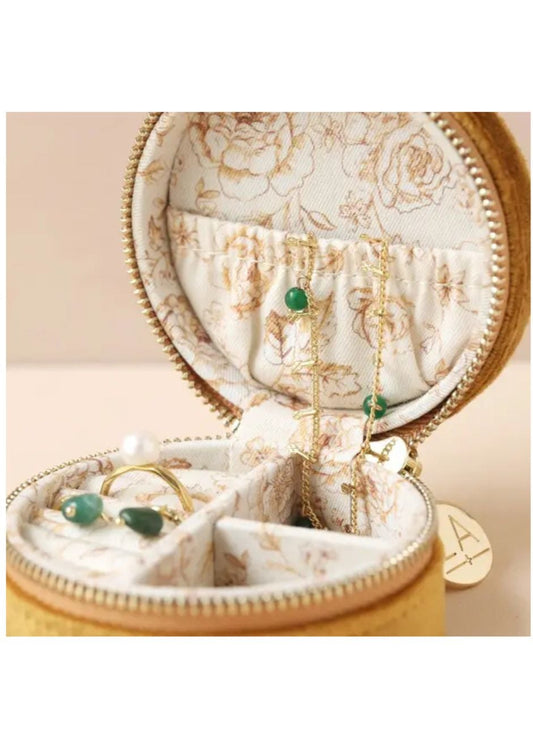 Mustard Velvet Round Travel Jewellery Case